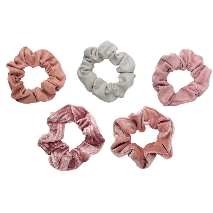 Velvet Scrunchies - Black/Gray These adorable scrunchies are the perfect addition for your ponytail or wrist! Velvet Scrunchies card features 5 velvet hair scrunchies in assorted black/gray tones